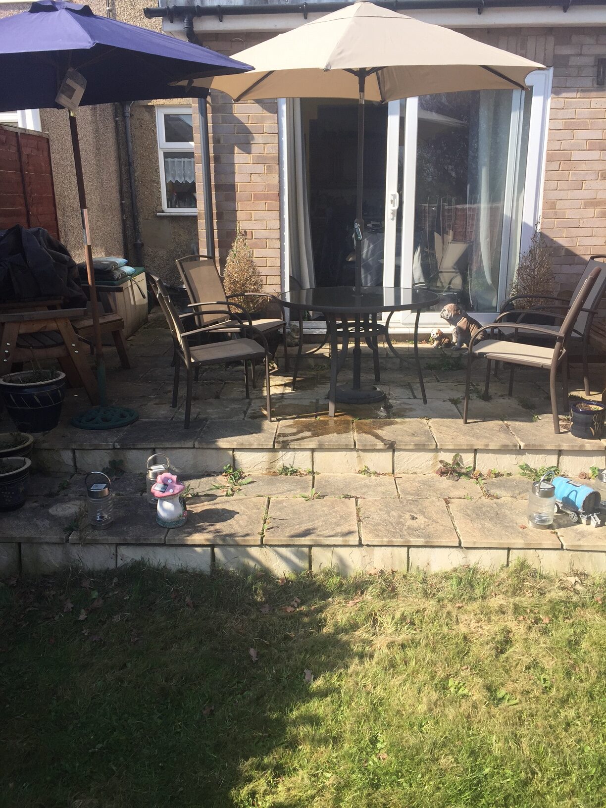 Patio needs a bit of tidy up, relaying some of the slabs concrete, were see if we can get someone in to do that?